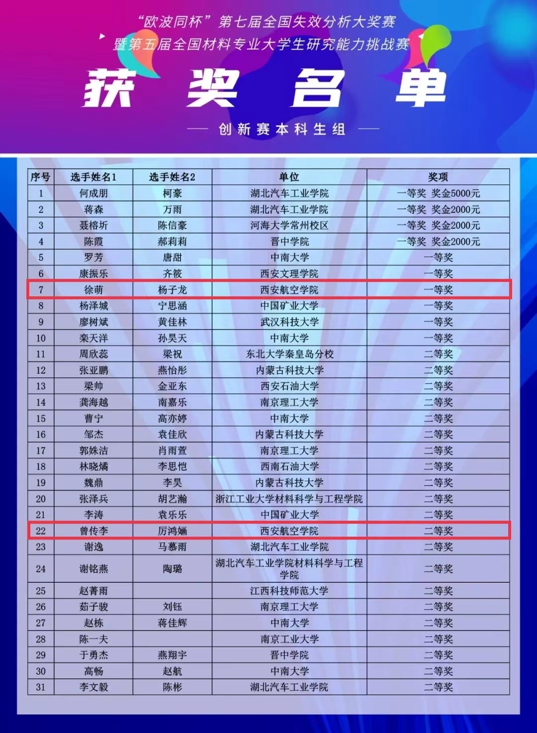 2022年10月21日至23日,第七届“欧波同杯”全国失效分析大奖赛在“云端”进行,必赢官网必赢242net官网参赛的两支队伍分别获得一等奖、二等奖。