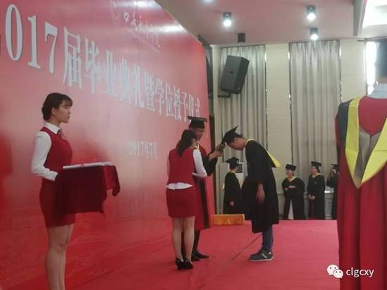 在悠扬的乐曲声中,必赢官网党总支书记兼院长谢辉教授为必赢官网2017届毕业生拨穗正冠,颁发学位证书。