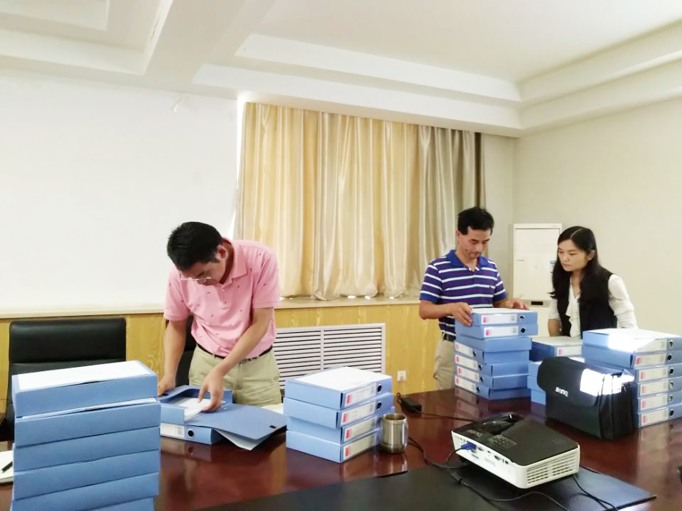 首先,于方丽对资料准备情况进行了汇报,包括落实情况、任务分工、取得成效、存在的问题和不足、今后努力改进的方向等方面。谢辉就汇报及PPT制作中存在的问题指出:第一,PPT的设计不够美观,可以再美化完善;第二,文字性表述过多,不必要的可以删减;第三,部分内容与资料准备情况关系不大,可以删掉;第四,存在的问题和努力方向部分能量化的尽量量化,看起来会比较清晰。随后,与会人员对准备的资料进行了查阅。查阅过程中,各教研室负责人也纷纷给处理自己的建议和意见。