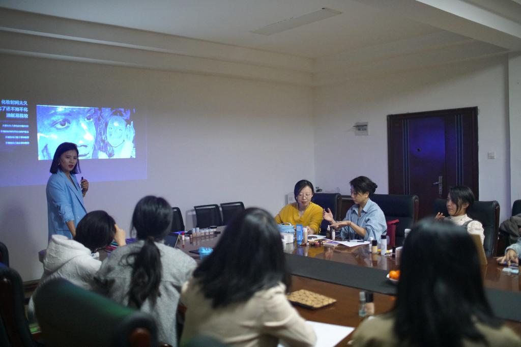 活动中,学院向每位到场的女教职工赠送了鲜花。现场,女教师们积极参与互动,化妆师为参加培训的每位女教师化上了漂亮的妆容,并针对她们各自的特点DIY设计了符合她们的眉形妆容,氛围温馨和谐,到场人员脸上都洋溢着灿烂的笑容。