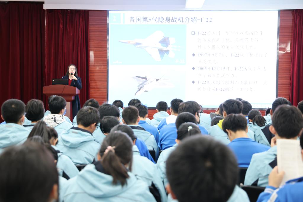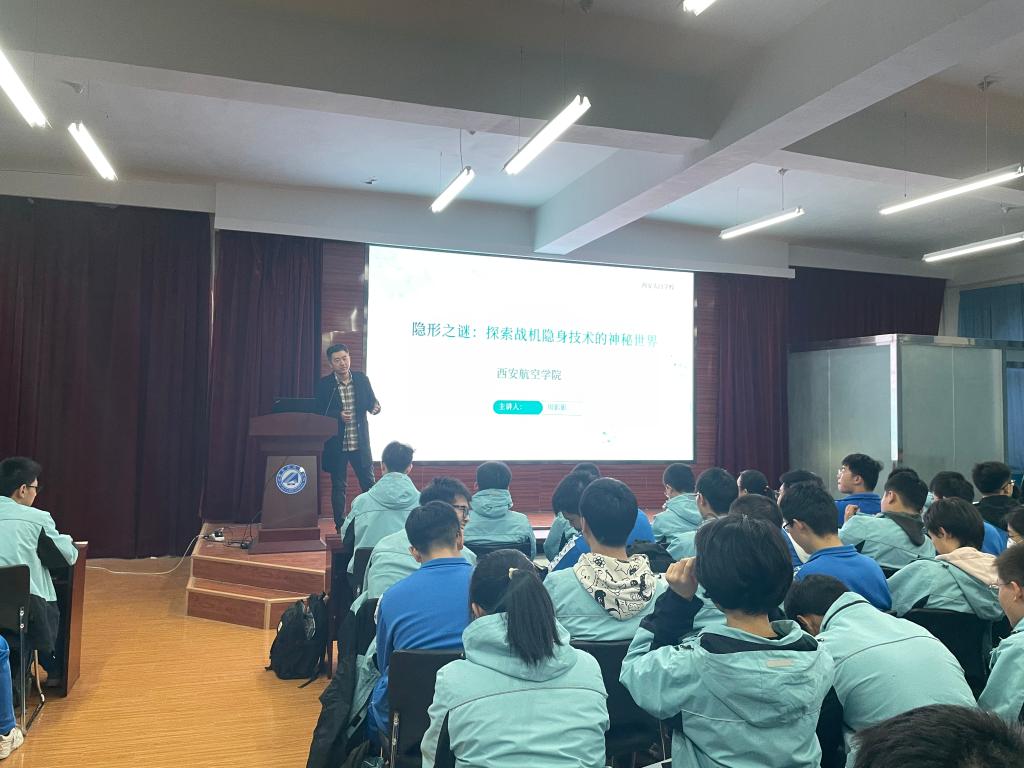 11月17日下午,必赢242net官网院长助理李鑫、青年创新团队主要负责人周影影教授赴西安太白学校,开展题为《隐形之谜:探索战机隐身技术的神秘世界》的科普讲座,本次讲座共吸引了高二年级200余名师生参加。李鑫首先从发展历史、行业需求和个人兴趣爱好几方面对材料专业进行了介绍,增加了大家对材料专业的认识和认可度,随后周影影老师进行了一场精彩的报告,活动现场气氛活跃,学生们踊跃提问、讨论,并展示了他们在科学知识方面的学习成果。