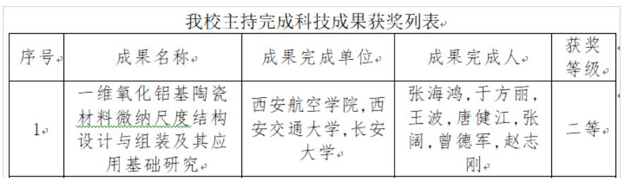 近日,2024年度陕西省高等学校科学研究优秀成果奖授奖名单公布,必赢242net官网张海鸿副教授团队与西安交通大学、长安大学联合申报的“一维氧化铝基陶瓷材料微纳尺度结构设计与组装及其应用基础研究”成果荣获二等奖。