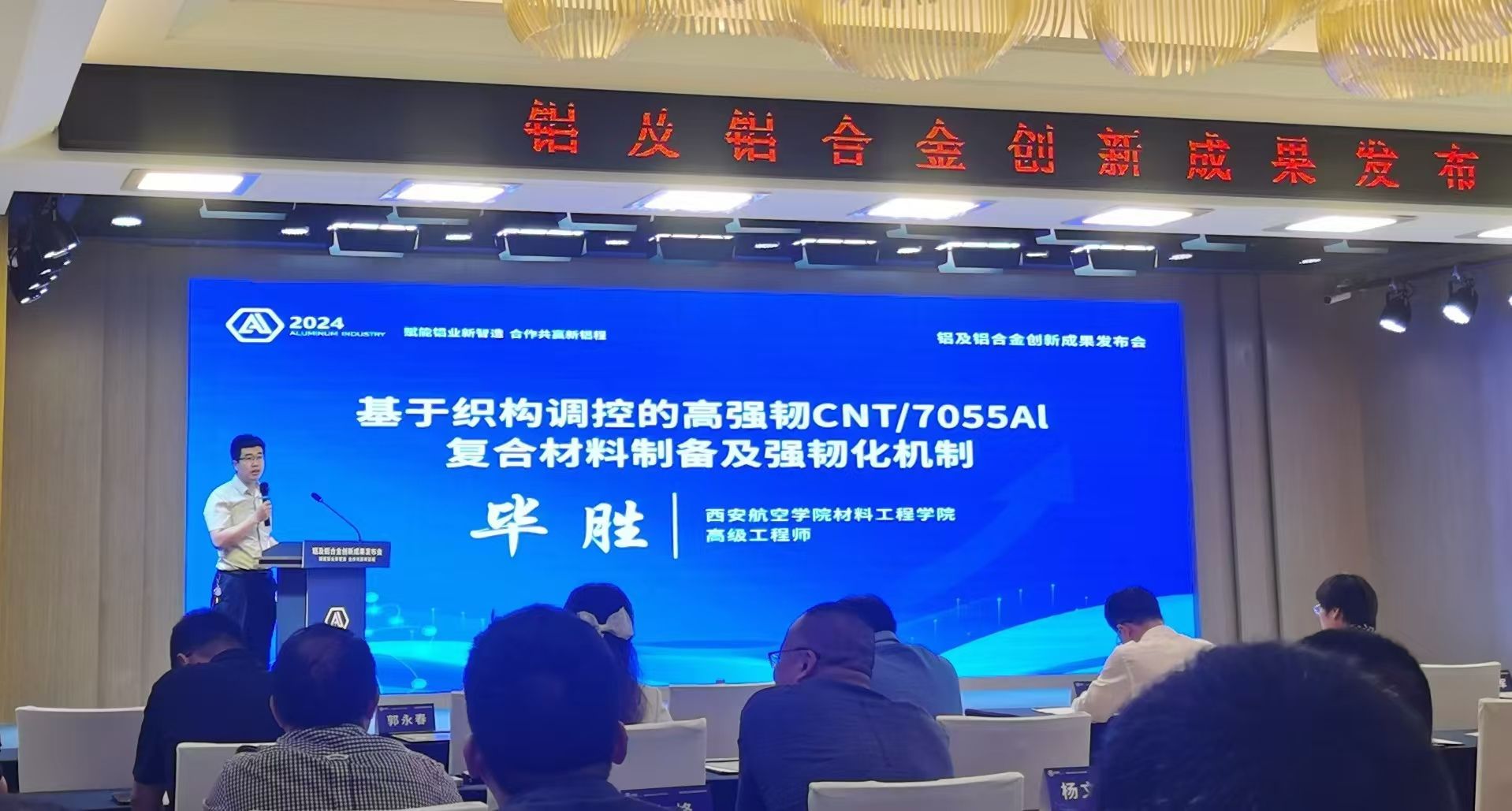 下午铝及铝合金创新成果发布会,会议由西安工业大学材料与化工学院院长杨忠主持,西安交通大学、西北工业大学、西安理工大学、西安工业大学、西安石油大学等高校教师以及企业代表汇报关于铝及铝合金的最新研究成果。在茶歇间隙各与会代表进行了深入的讨论和交流,铝合金成果发布会反响热烈。必赢官网教师毕胜汇报了题目为《基于织构调控的高强韧CNT/7055Al复合材料制备及强韧化机制》的报告。会后,毕胜接受了铜川媒体记者的采访。