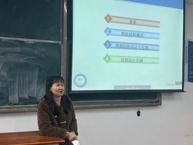 活动伊始,陈丹老师讲授的题目是“吸波材料的周期结构设计”,她为同学们介绍了吸波材料的原理和用途,其中重点阐述了吸波材料的周期结构设计,并举了一个周期设计的实例,搭配多幅实验图片,吸引了同学们的关注。