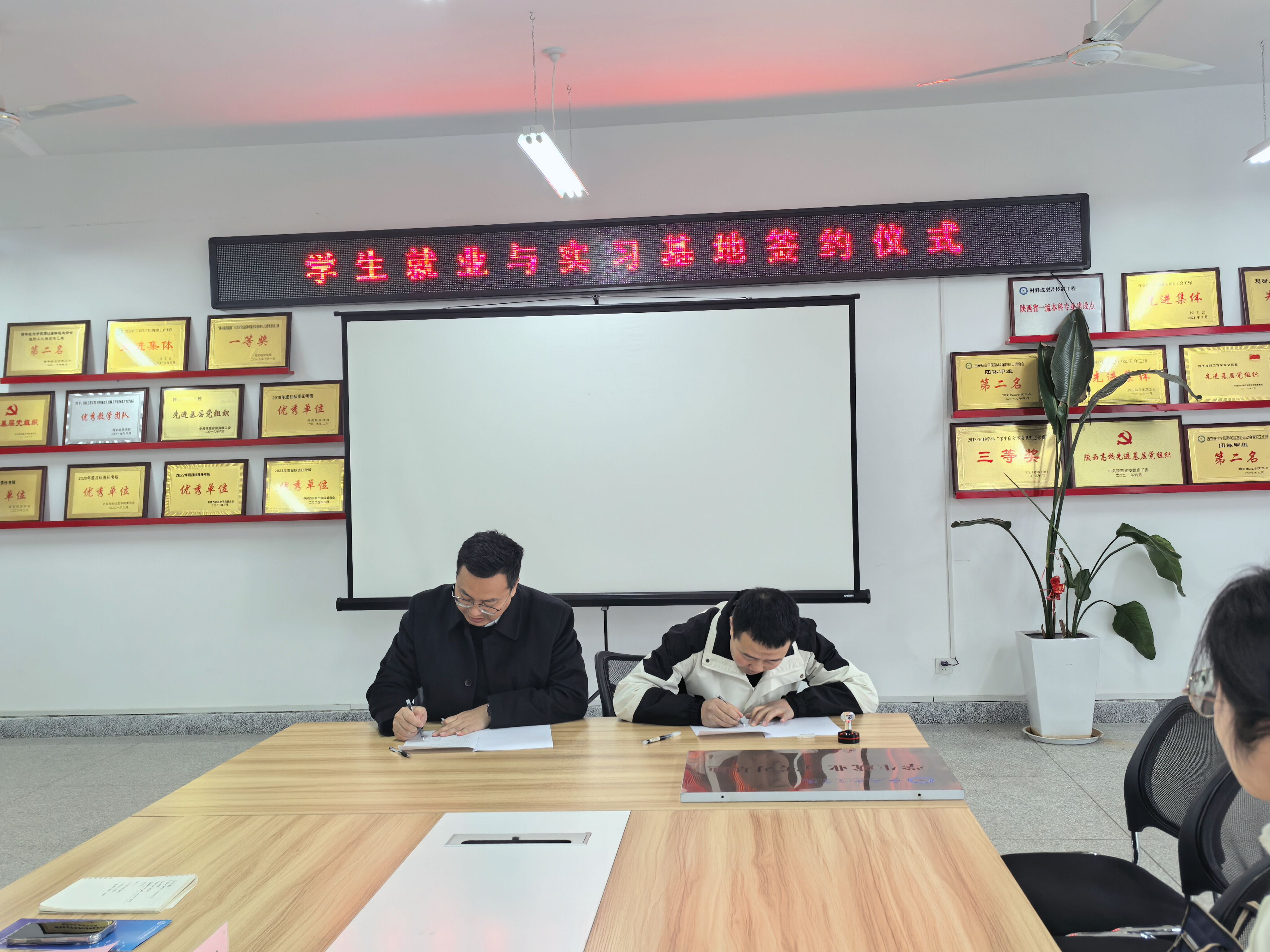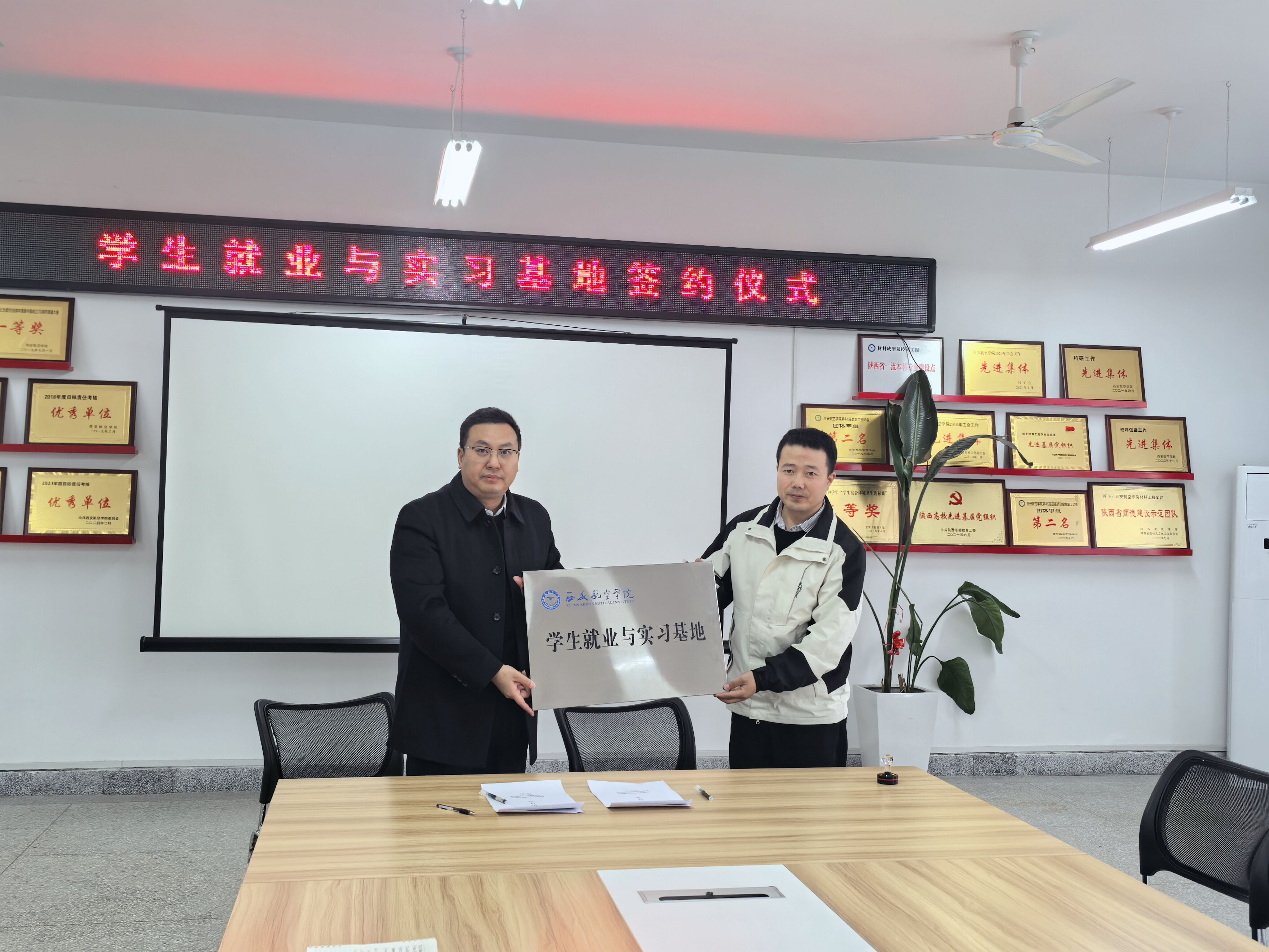 在热烈的掌声中,严碧峰与张毅共同签署了校企合作协议,并为基地揭牌。这标志着双方的合作正式拉开帷幕,开启了互利共赢的新篇章。