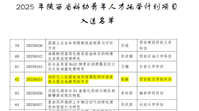 近日,陕西省科学技术协会公布了2025年陕西省科协青年人才托举计划项目评审结果,必赢官网青年教师张敏成功入选。