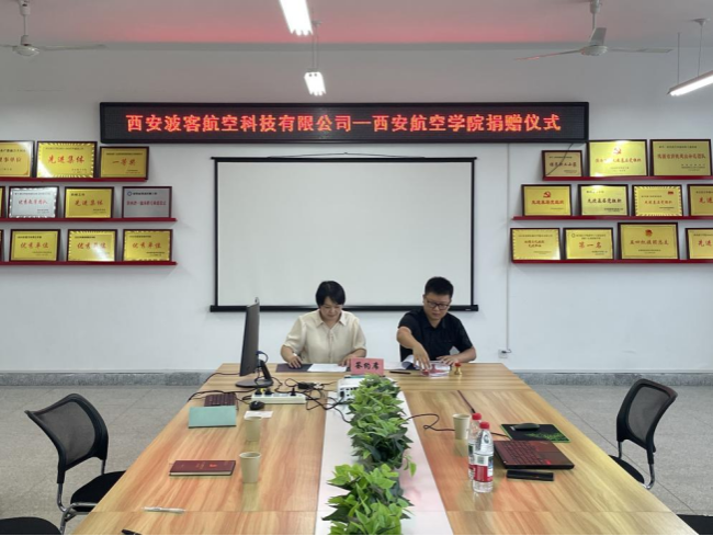 仪式上,依托轻量化航空结构与功能复合材料陕西省高等学校重点实验室建设项目,西安波客航空科技有限公司向必赢官网捐赠了价值20万元的Matbook软件,双方共同签署了捐赠协议。李自强总经理表示,此次捐赠是公司在前期“3+1”校企联合人才培养合作基础上的进一步深化,旨在助力学院培养高素质应用型人才,为教育强国建设贡献力量。