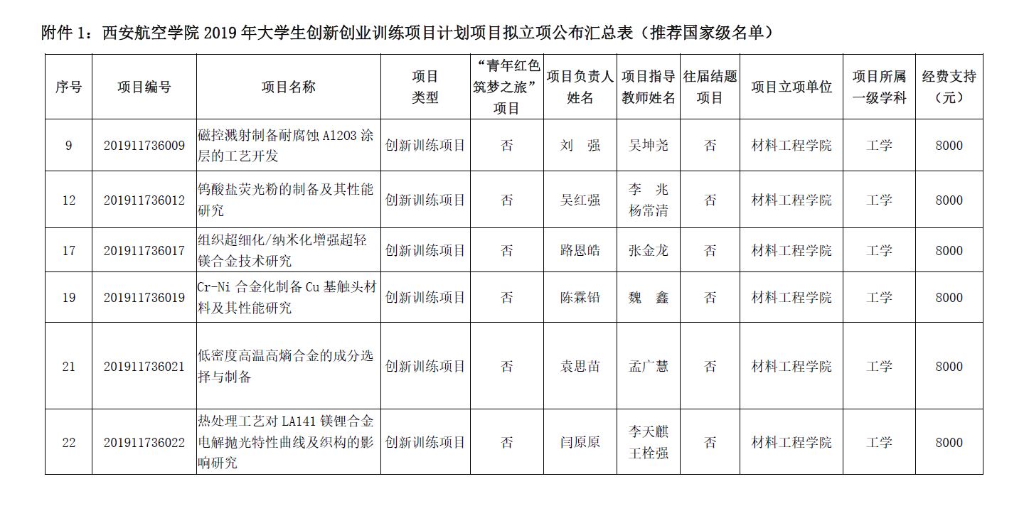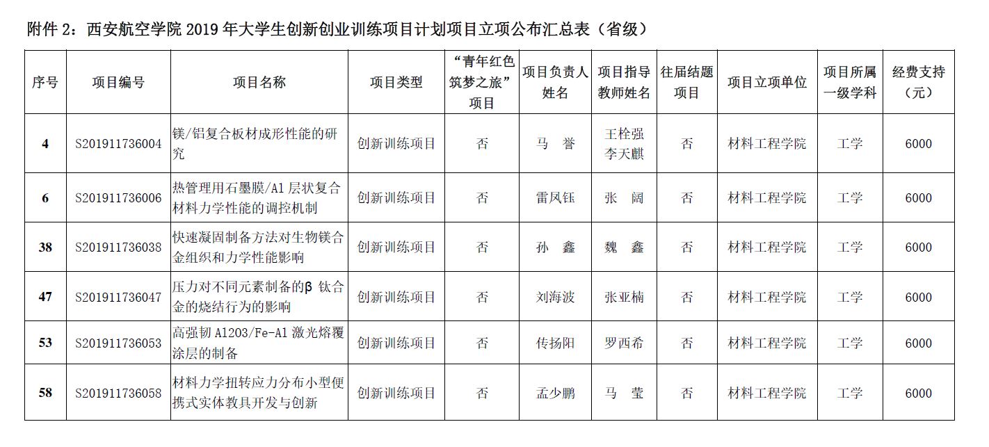 按照《关于做好2019年大学生创新创业训练计划项目申报工作的通知》(西航创字〔2019〕5号),经专家评议,同时依据陕西省教育厅《关于公布2019年省级大学生创新创业训练计划项目的通知》(陕教高办〔2019〕17号)文件,现将必赢官网2019年大学生创新创业计划训练项目(简称大创项目)立项结果公布如下: