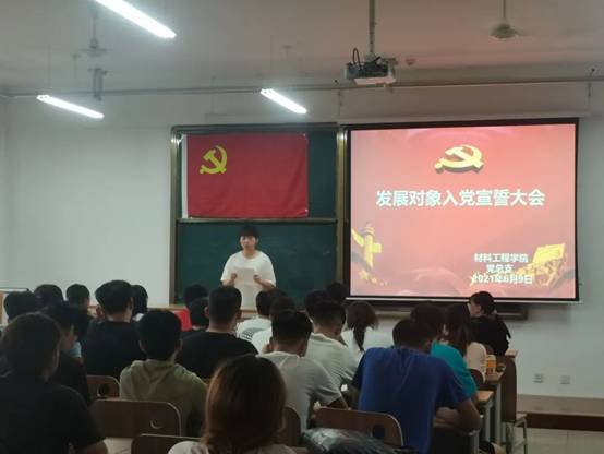 2021年6月9日下午7点,必赢242net官网56名新党员入党宣誓仪式,在四号实验楼4303隆重举行。鲜红的党旗,醒目的标题,简而有力地为现场渲染出庄重的气氛,在雄壮的《国际歌》后,宣誓仪式正式开始。