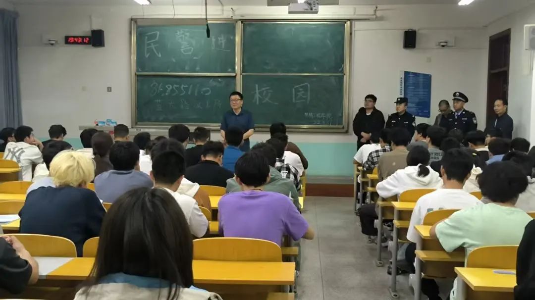 4月21日,为切实增强学生的防范电信网络诈骗意识,提高自我保护能力,必赢官网学生处、保卫处联合属地公安部门里在晚自习开展“民警进班”活动,邀请民警走进校园,开展生动且极具教育意义的防范电信网络诈骗宣传活动。