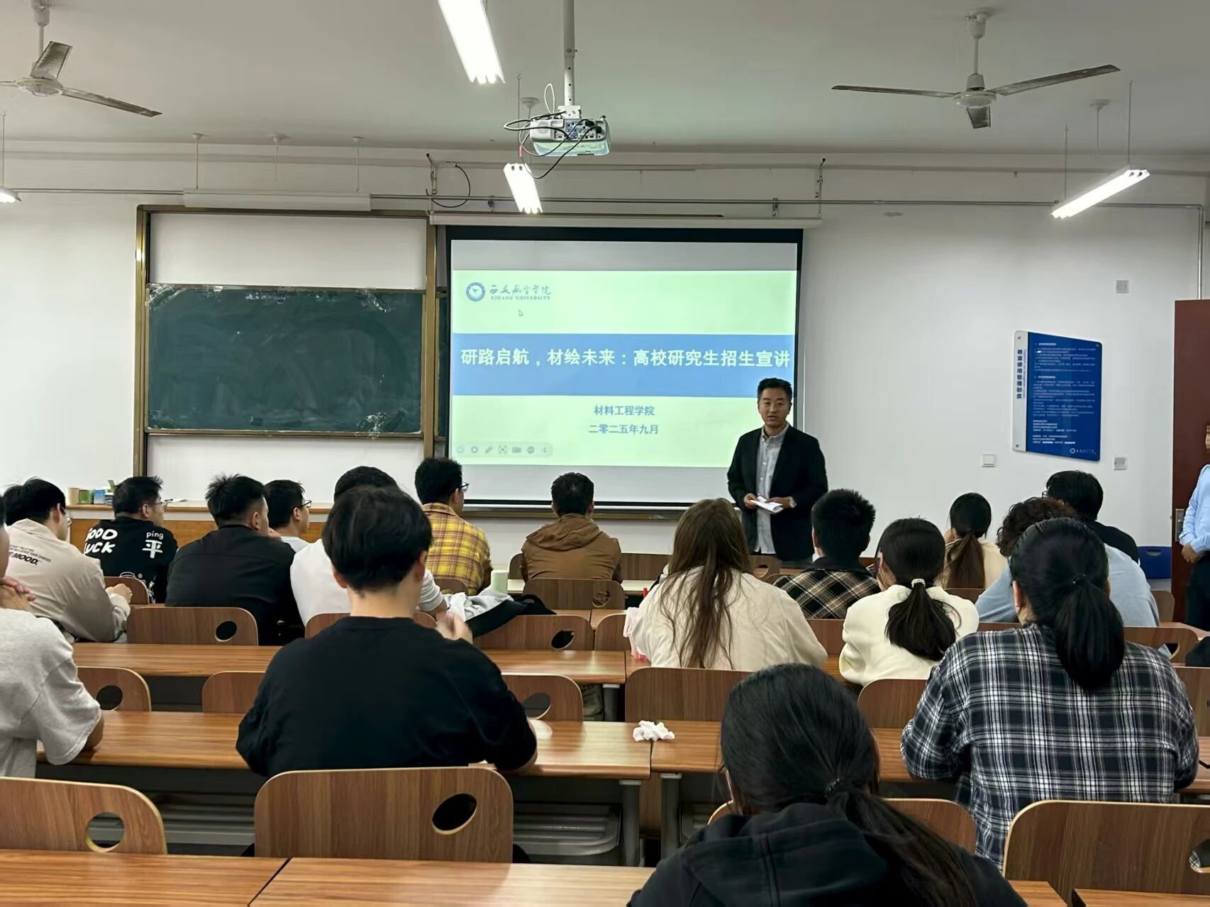 为帮助26届学生明确考研目标、掌握备考策略。9月18日,必赢官网特邀陕西理工大学、西安建筑科技大学、西安理工大学三所高校的招生负责人与优秀导师代表,共同举办“研路启航,材绘未来——高校研究生招生宣传进材料学院活动。全院有考研意向的学生到场参与,现场氛围热烈。