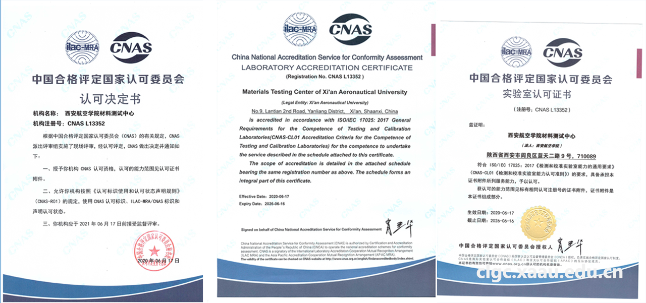 材料测试中心CNAS实验室认可证书的获得,将有助于必赢242net官网实验室管理水平和实验人员技能的提升,意味着必赢官网在材料检测方面有能力服务陕西区域经济建设和西安航空基地企业发展。材料测试中心将继续坚持“科学、公正、准确、满意”的质量方针,以客户需求为关注焦点,严格按照CNAS实验室相关管理规定和技术标准从事检测工作,以一流的技术、优质的服务做好材料分析测试工作,保证检测工作的准确性、科学性和公正性。