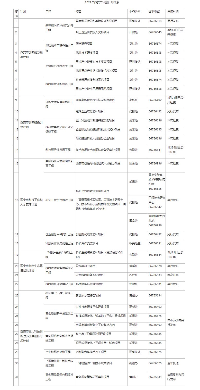 为深化创新驱动发展战略,加快推进秦创原创新驱动平台建设,2022年西安市科技计划项目围绕秦创原“一总两带”总格局,以促进两链融合加强需求端科技成果转化能力为主线,围绕产业链部署创新链、围绕创新链布局产业链,促进科技与经济紧密结合和协同发展,强化基础研究能力建设,夯实企业创新主体地位,全面提升科技策源能力,提高科技创新服务能力水平,营造更好的创新创业生态环境。现发布2022年度西安市科技计划项目申报指南,并就有关工作通知如下:
