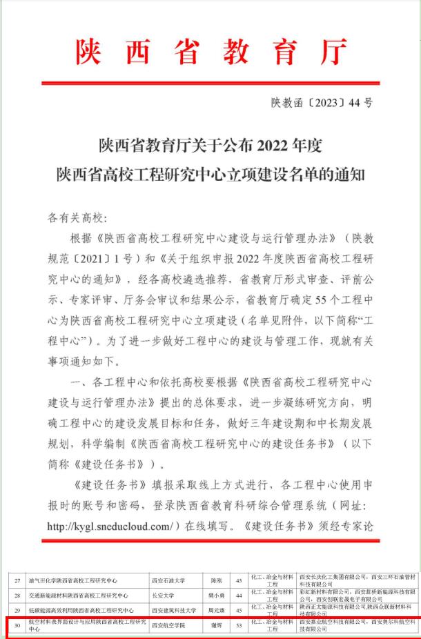 (航空材料表界面设计与应用陕西省高校工程研究中心)、